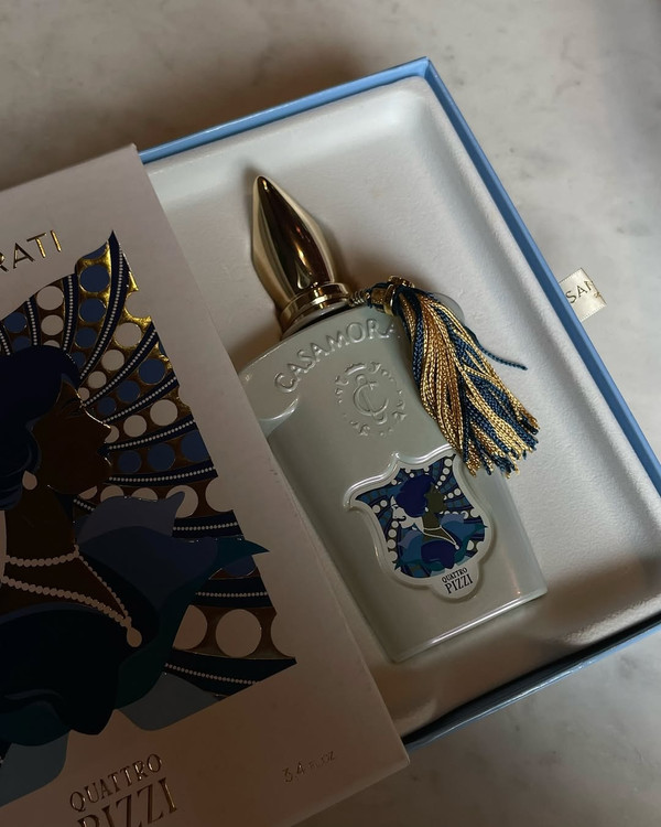 Casamorati Quattro Pizzi یا کواترو پیتزی کازاموراتی عطری گرم و گورماند با ترکیب عسل، تنباکو و وانیل است که رایحهای لوکس، عمیق و بسیار جذاب ایجاد میکند. این عطر انتخابی خاص برای شب و موقعیتهای رسمی محسوب میشود.