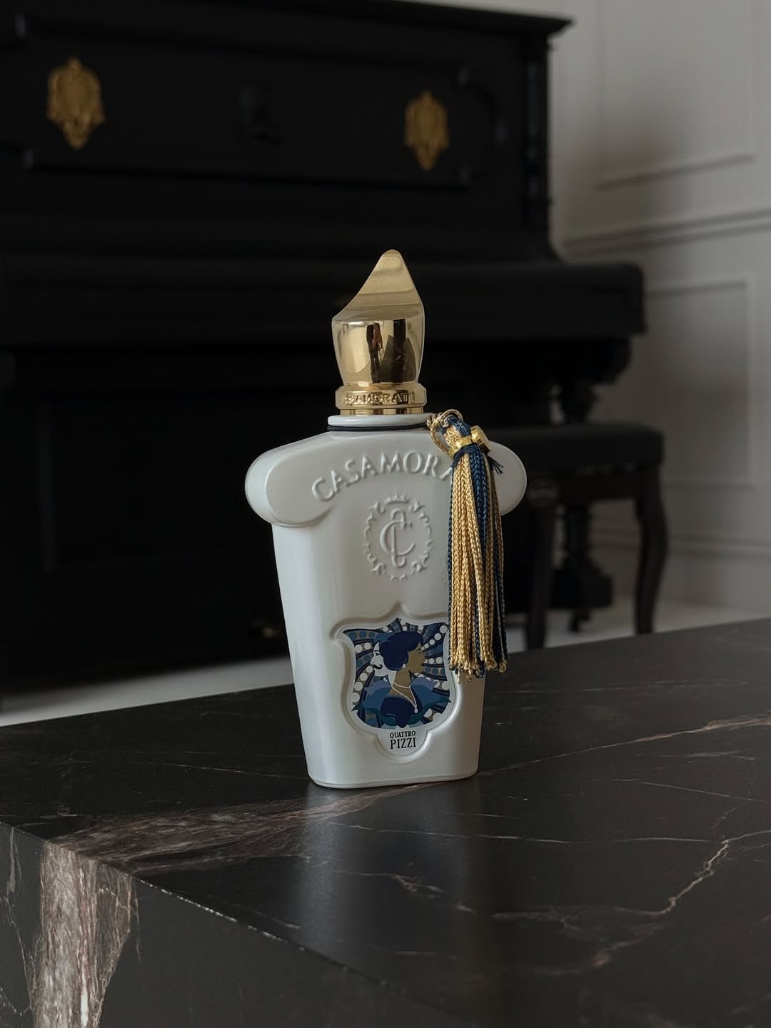 Casamorati Quattro Pizzi یا کواترو پیتزی کازاموراتی عطری گرم و گورماند با ترکیب عسل، تنباکو و وانیل است که رایحهای لوکس، عمیق و بسیار جذاب ایجاد میکند. این عطر انتخابی خاص برای شب و موقعیتهای رسمی محسوب میشود.