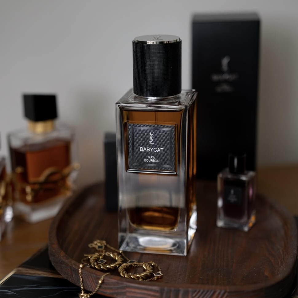 Yves Saint Laurent Babycat Raw Bourbon یا بیبیکت راو بوربن ایو سن لوران عطری یونیسکس با محوریت وانیل بوربون و ادویههای گرم است که رایحهای تاریک، اغواگر و بسیار لوکس ارائه میدهد. این عطر انتخابی خاص برای شب و موقعیتهای رسمی محسوب میشود.