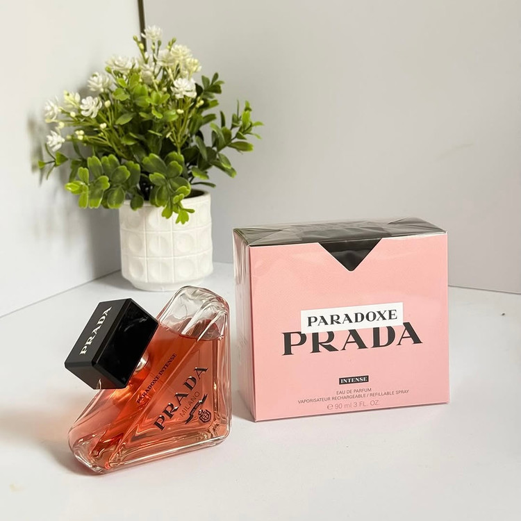 پرادا پارادوکس اینتنس Prada Paradoxe Intense نسخه عمیقتر و اغواگرتر پارادوکس است که با ترکیب وانیل گرم، یاس درخشان و کهربای مدرن، رایحهای لوکس، ماندگار و بسیار زنانه برای شب و فصول سرد ارائه میدهد.